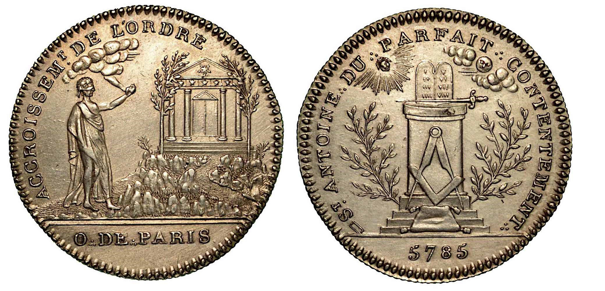 FRANCIA. Oriens de Paris. Saint Antoine du Parfait contentement 5785 (1785)., Medaglia in argento.