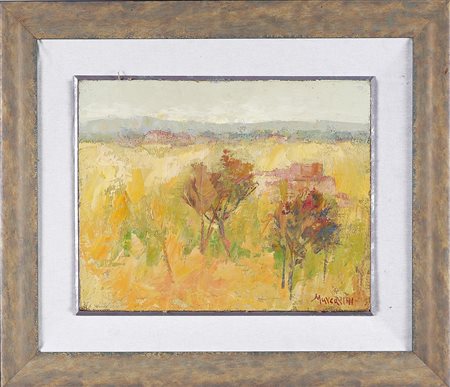 MARCARINI LUIGI Meriggio. Olio su tavola. Cm 50,00 x 40,00. Firma in basso a destra. Al retro cartiglio dell'artista. Cornice presente