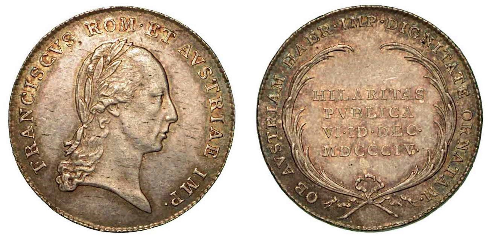 FRANCESCO I D'AUSTRIA, ASSUNZIONE DEI NUOVI TITOLI IMPERIALI., Gettone in argento 1804.