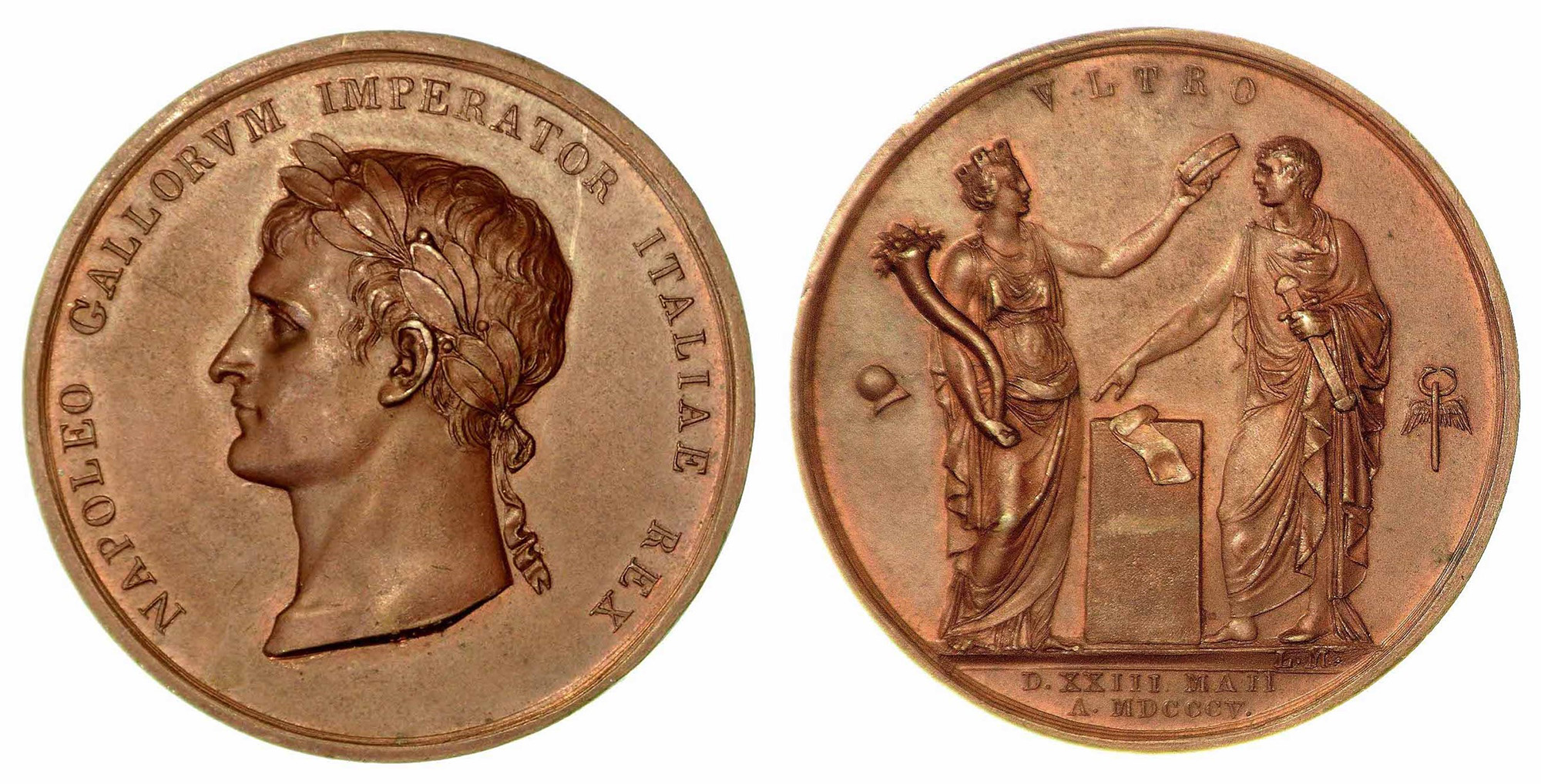 INCORONAZIONE A MILANO DI NAPOLEONE A RE D’ITALIA., Medaglia in bronzo 1805.
