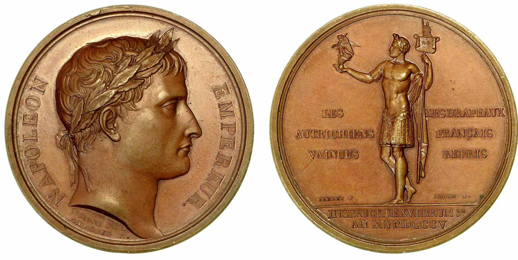 RICONQUISTA DELLE BANDIERE FRANCESI E INGRESSO DEL GENERALE NEY A INNSBRUCK., Medaglia in bronzo 1805.