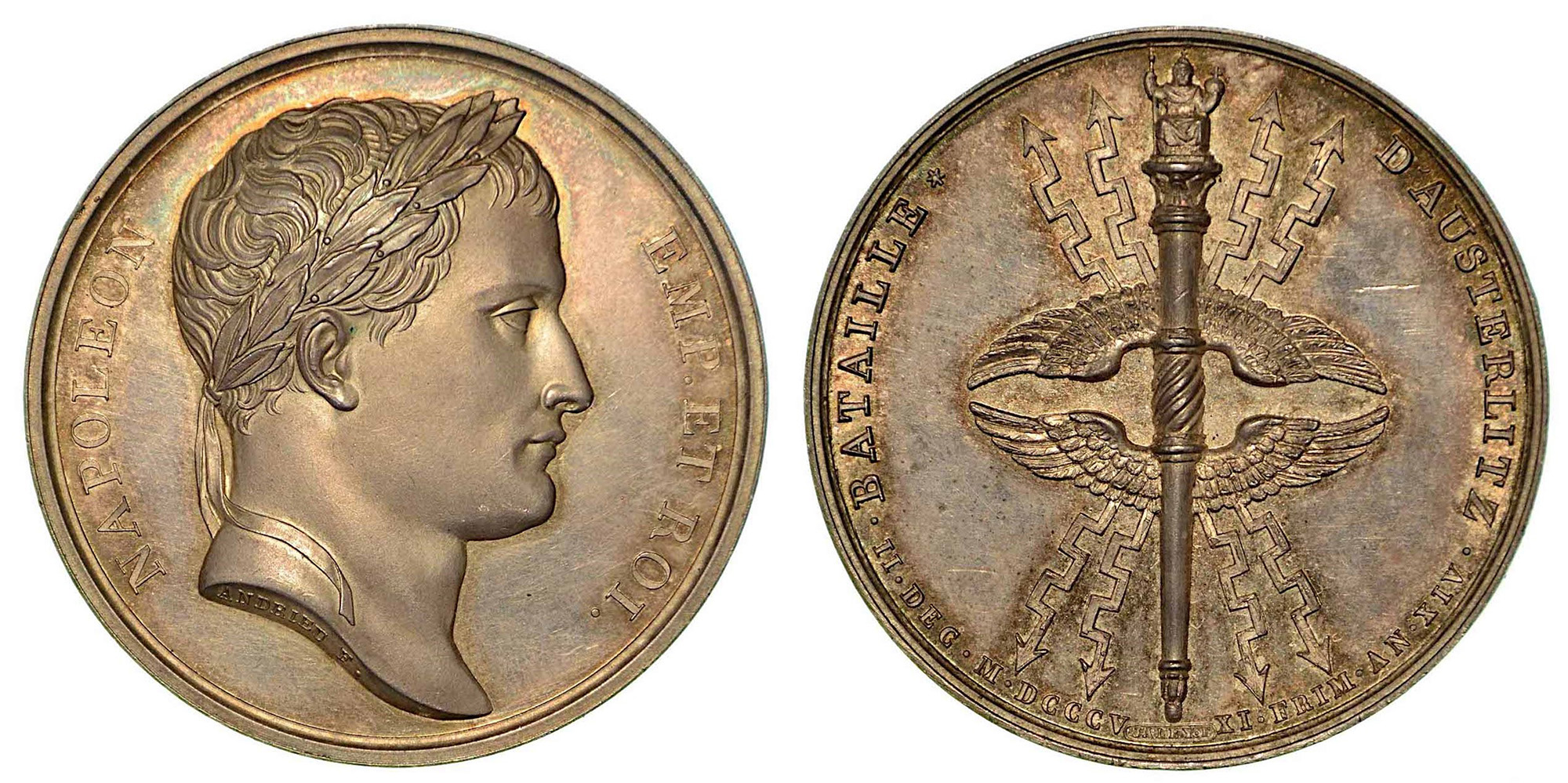 BATTAGLIA DI AUSTERLITZ., Medaglia in argento 1805.