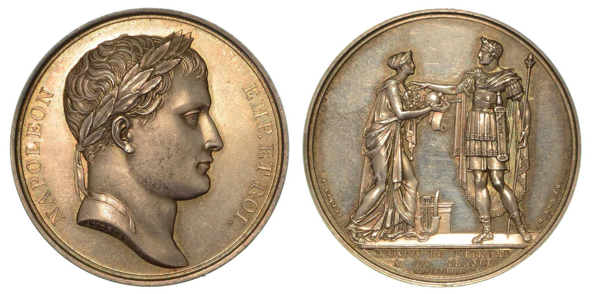 ANNESSIONE DELL'ETRURIA ALLA FRANCIA., Medaglia in argento 1808.
