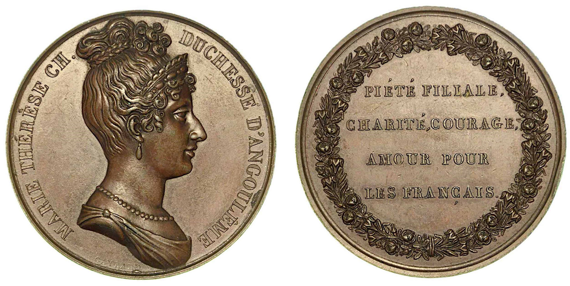 MARIA TERESA CARLOTTA DI BORBONE (1778-1851), DUCHESSA D'ANGOULÊME, DELFINA DI FRANCIA., Medaglia in bronzo, Parigi.
