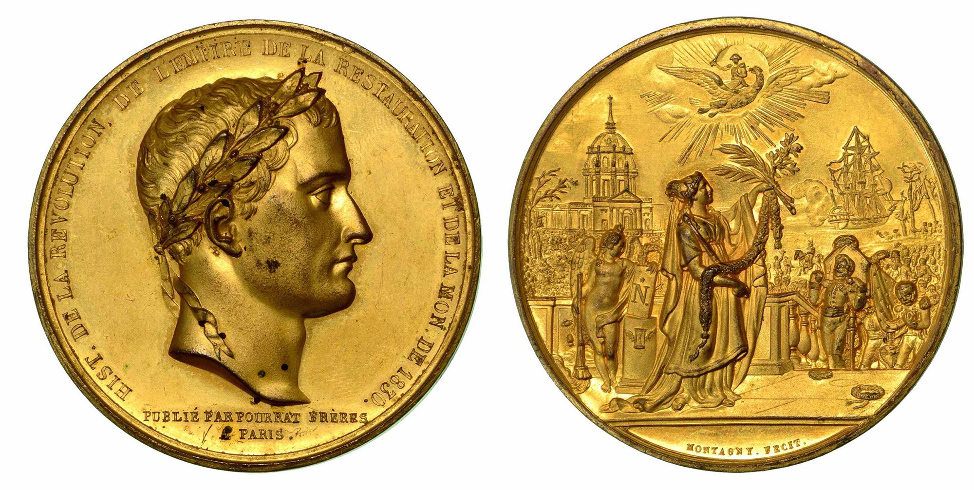 TRASLAZIONE A LES INVALIDES DELLE CENERI DI NAPOLEONE BUONAPARTE (1769-1821)., Medaglia in bronzo dorato 1840.