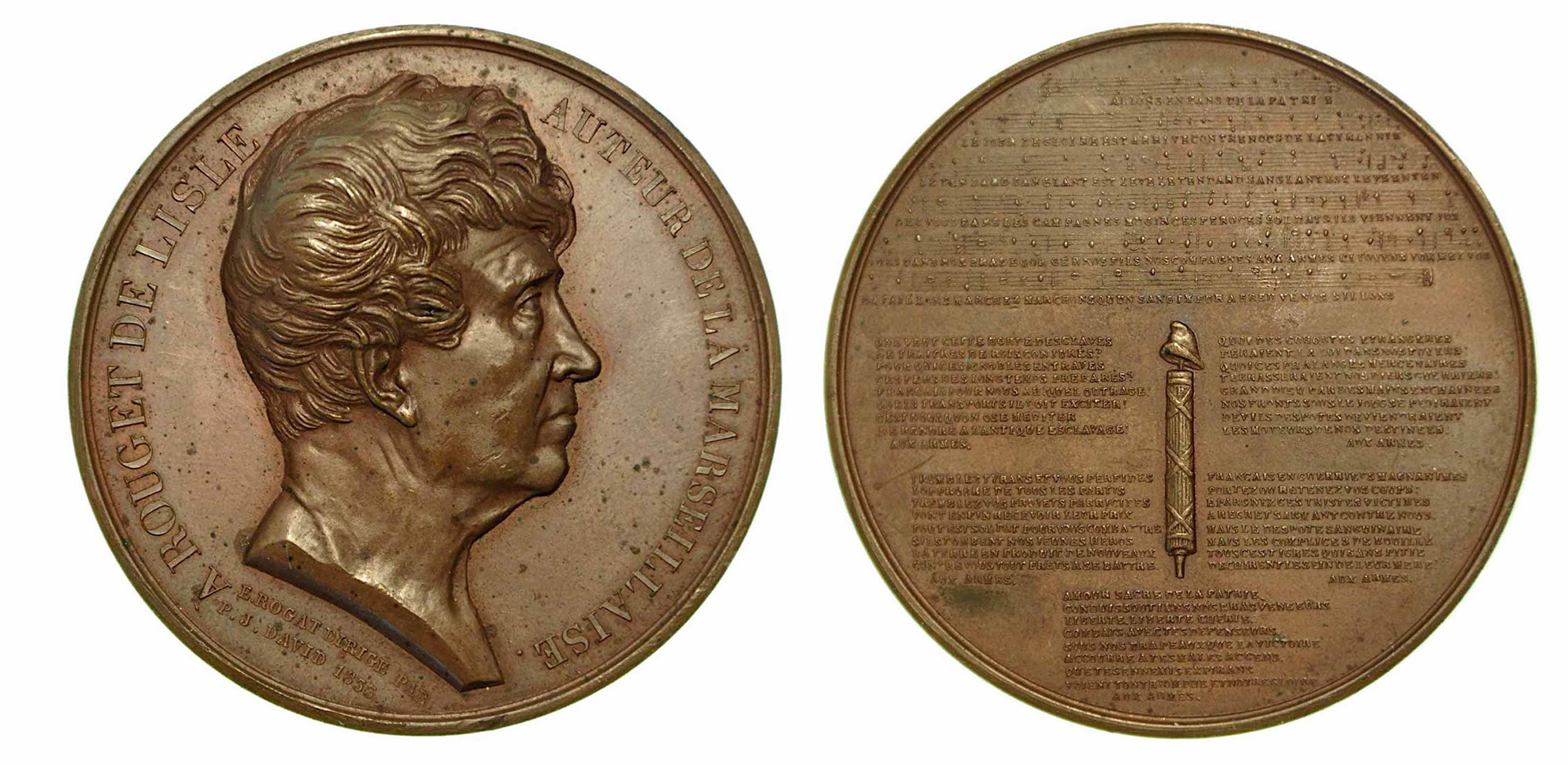 Lotto 795 | CLAUDE JOSEPH ROUGET DE LISLE (compositore della Marsigliese 1760-1836)., Medaglia in bronzo 1833.