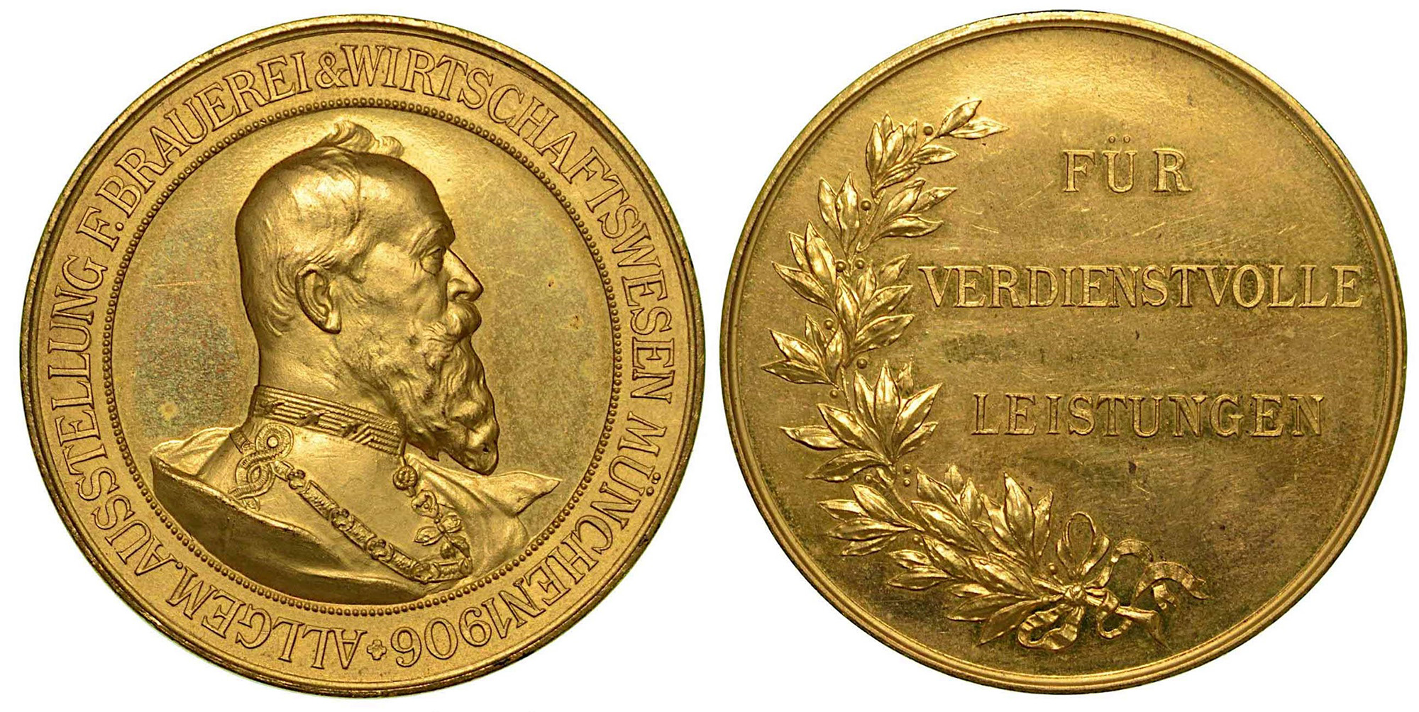 Lotto 798 | GERMANIA - BAVIERA. Principe reggente Liutpold, 1886-1912., Medaglia-premio in bronzo dorato 1906.