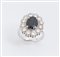 ANELLO IN ORO BIANCO, ZAFFIRO E DIAMANTI Realizzato con zaffiro ovale...