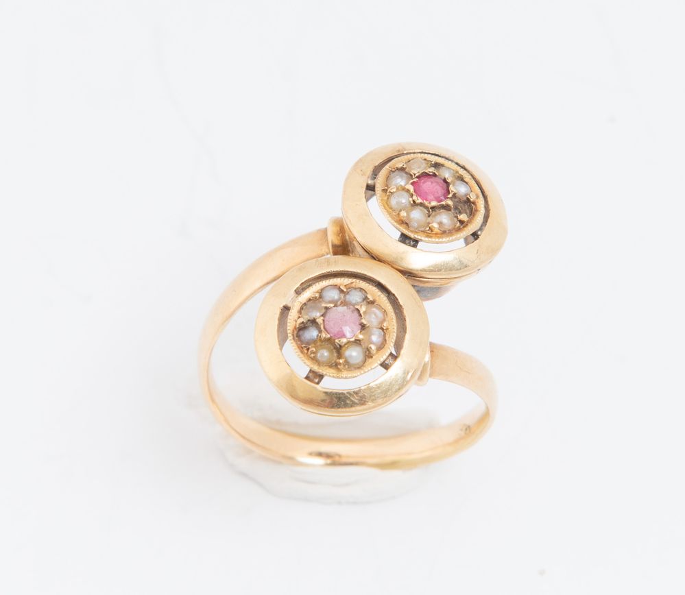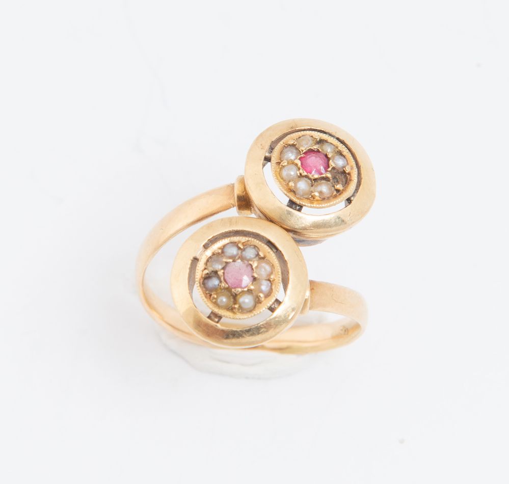 LOTTO DI DUE ANELLI. Ciascuno realizzato come un contrarié con rubini e...