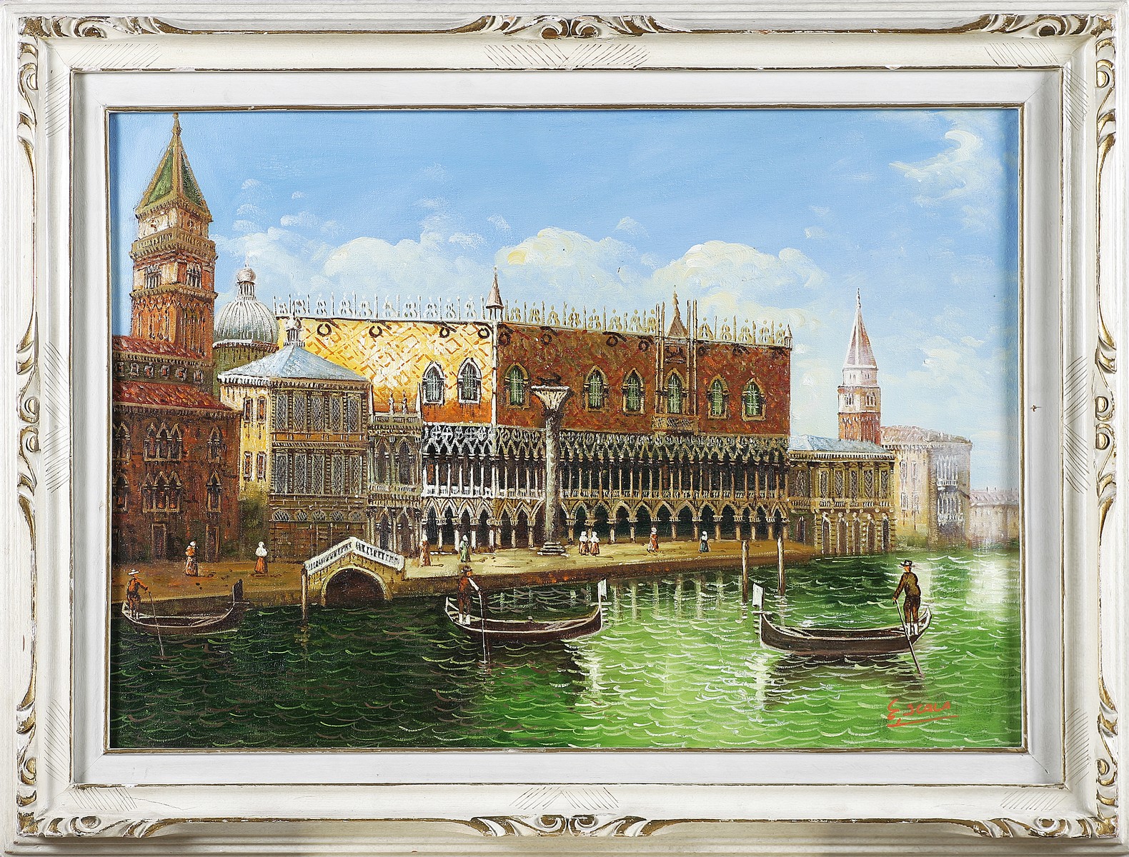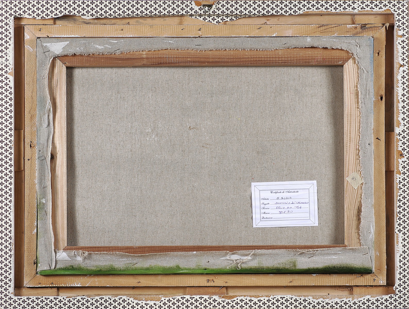 ANONIMO Scorcio di Venezia. Olio su tela. Cm 70,00 x 50,00. Firma in basso a destra. Al retro cartiglio descrittivo. Cornice presente