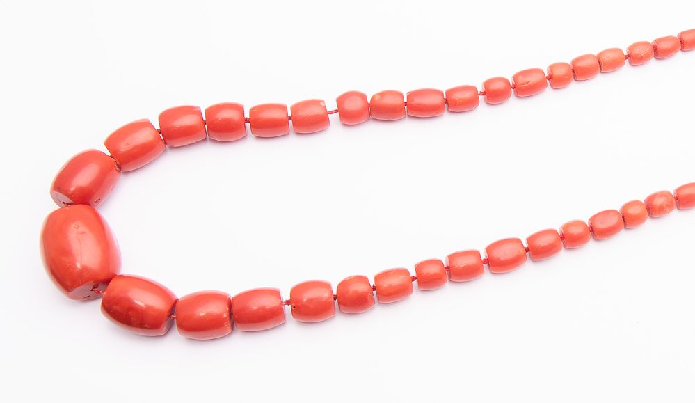 COLLANA IN CORALLO ROSSO Realizzata ad una fila di barilotti in corallo rosso...