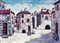 MAZZI PIERO (n. 1938) Piazzetta. Olio su tela. Cm 70,00 x 50,00 x 2,00. Firma in basso a destra. Al retro firma e titolo.