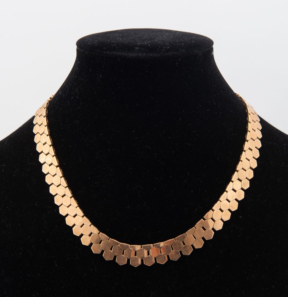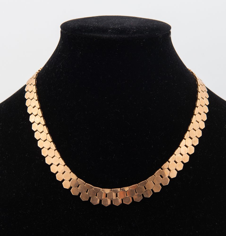 Lotto 89 | COLLANA IN ORO realizzata a tre file di maglie geometriche piatte snodate....