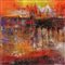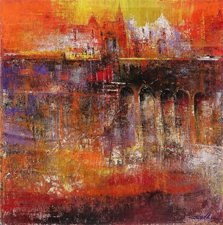 CRIVELLARO GELINDO Paesaggio veneziano. Olio su tela. Cm 70,00 x 70,00 x 2,00. Firma in basso a destra. Al retro titolo e firma.