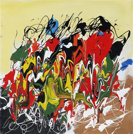 MANTOVANI COSTANZA Magica attrazione. Olio su tela . Cm 60,00 x 60,00. Firma in basso a destra. Autentica dell'artista su fotografia.