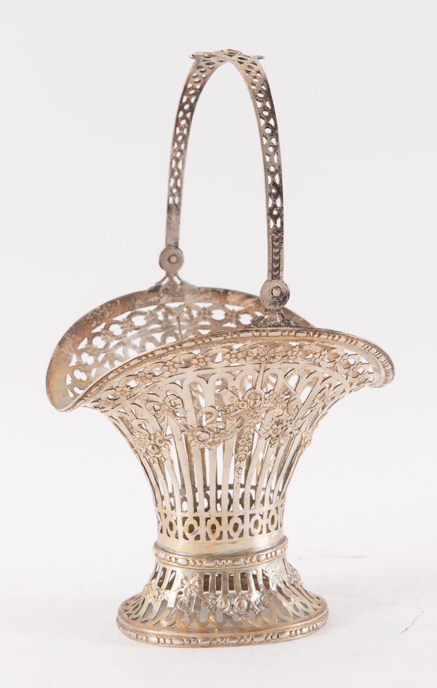 Cestina in argento. Sotto la base reca probabili punzoni di Hanau. Cm 16x15x14,6. Peso: 256 gr.