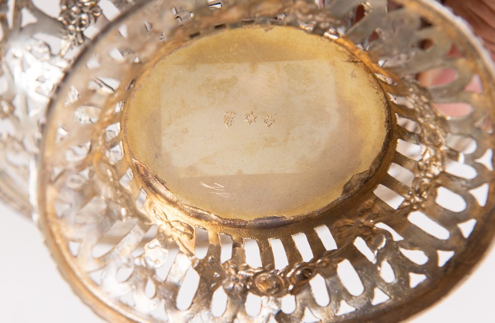 Cestina in argento. Sotto la base reca probabili punzoni di Hanau. Cm...