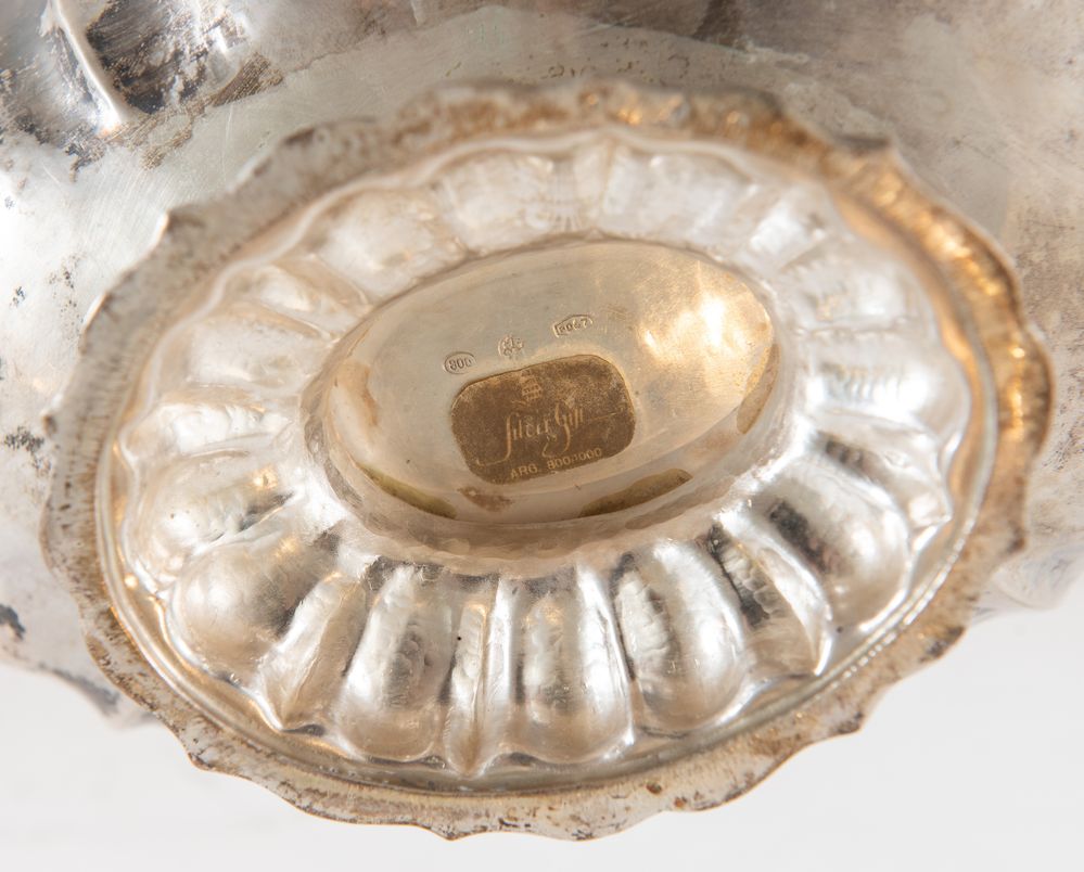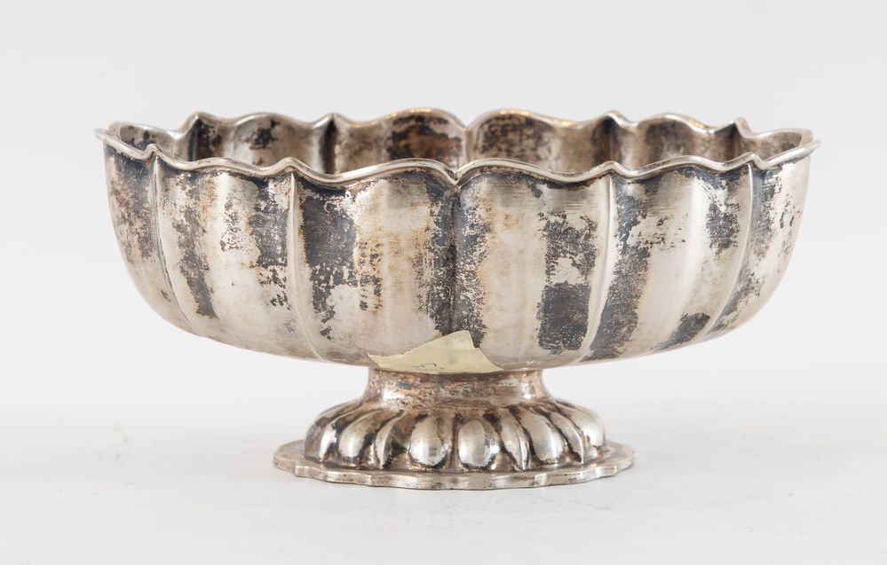 GREGGIO RINO, Padova, XX secolo. Ciotola in argento 800. Sotto la base reca punzoni: 800 e losanga locativa 29PD. Cm 7,5x20,5. Peso: 310 gr.