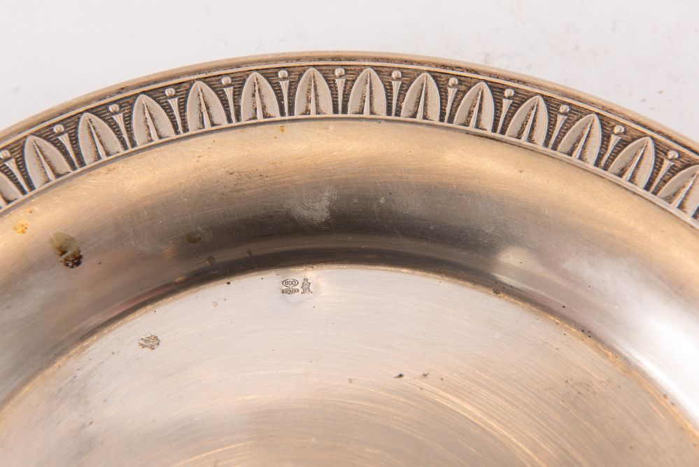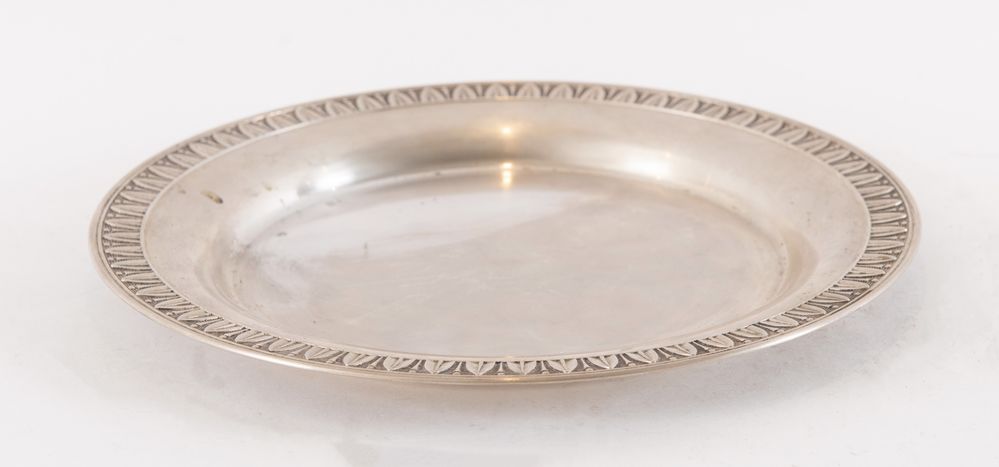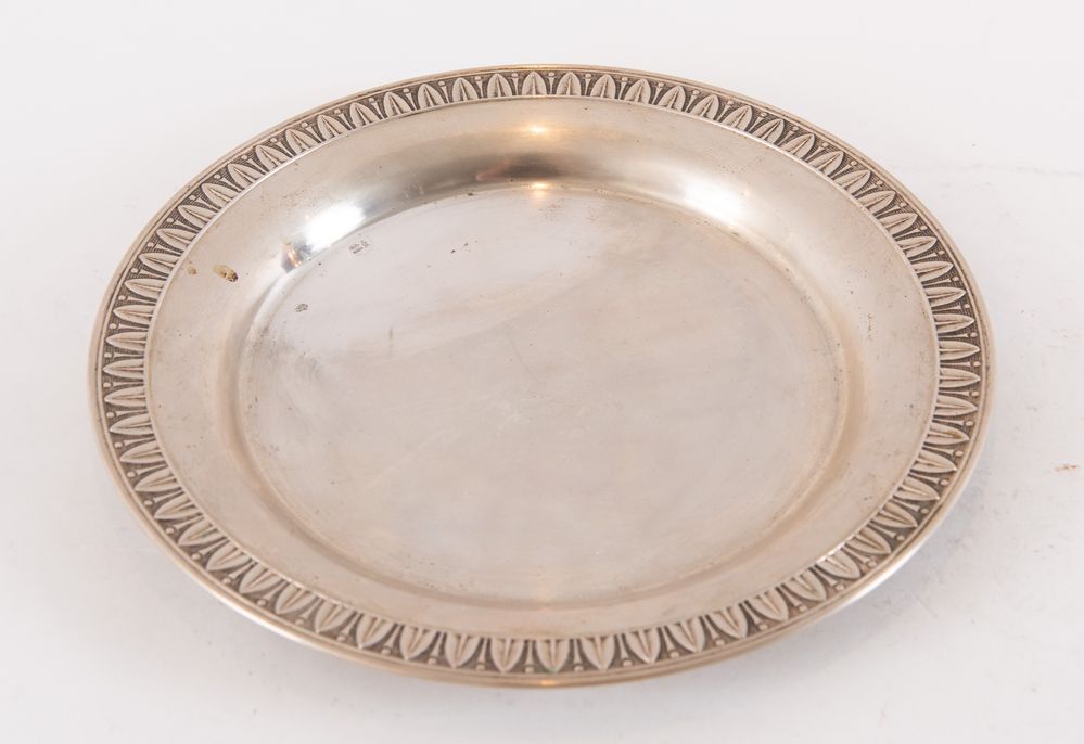 Masini Carlo, Firenze. XX secolo. Vassoio in argento 800. Sul piatto reca punzone 800, losanga locativa 197 Fi, più probabile stemma dell'argentiere. Ø: 25 cm. Peso: 186 gr.