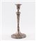 Venezia, metà del XIX secolo. Candelabro in argento 800. Sul bordo inferiore reca punzoni utilizzati dal 1812 al 1872: titolo dell'argento 800, ornamento di poppa e probabile stemma dell'argentiere/punzonatore R. Cm 24,5xØ 11,3. Peso: 327 gr.