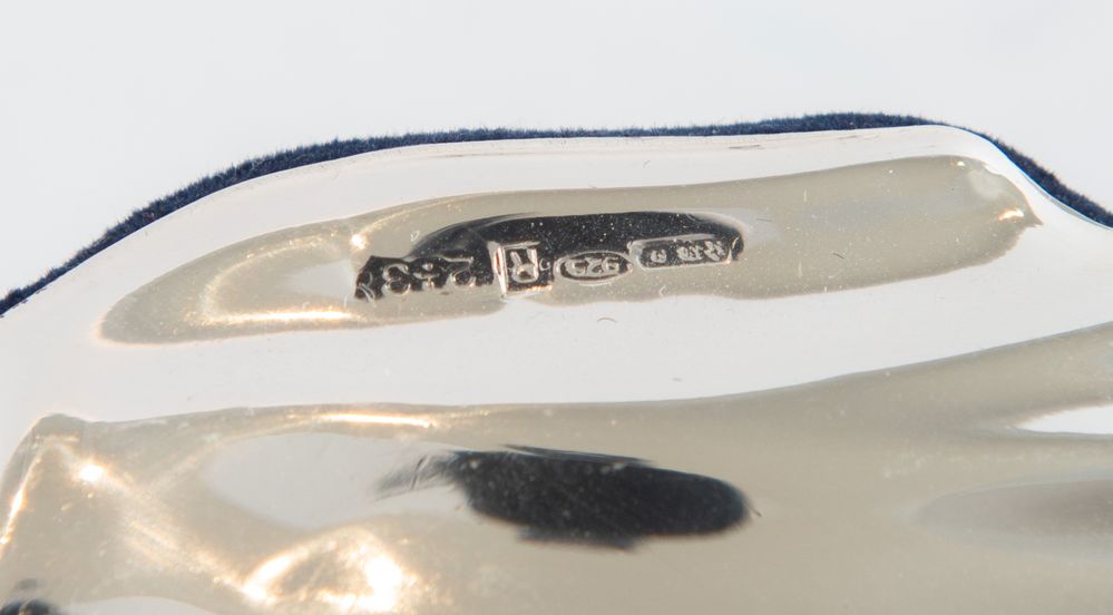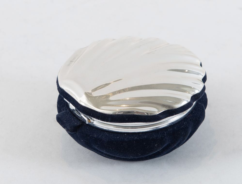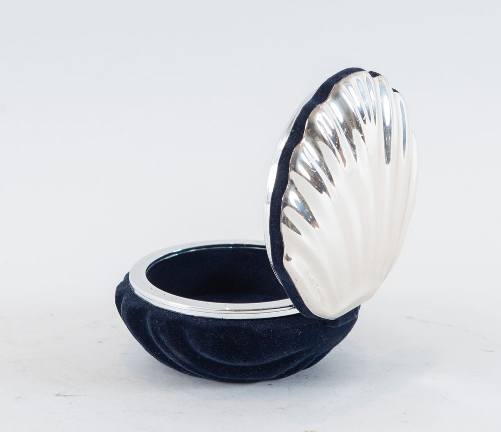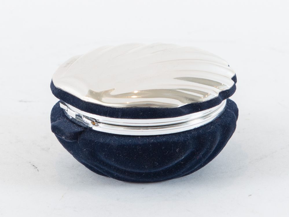 Argentiere fiorentino. Scatola in velluto con coperchio in lamina d’argento Sterling. Reca punzoni sopra al coperchio. Cm 8x12,5x5,5.