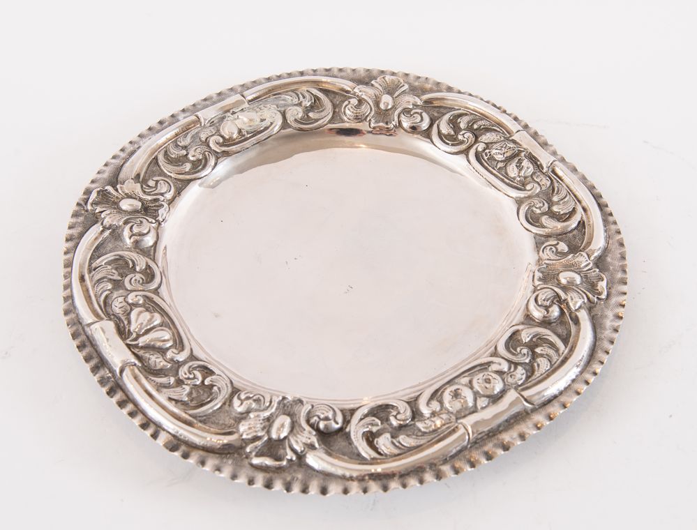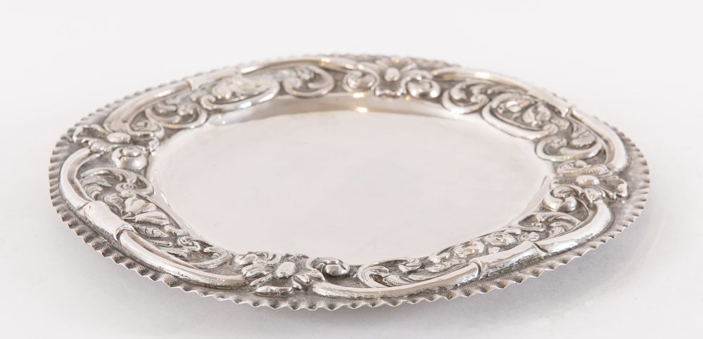 Piatto in argento 800. Al retro sulla base reca punzoni 800 e probabile...