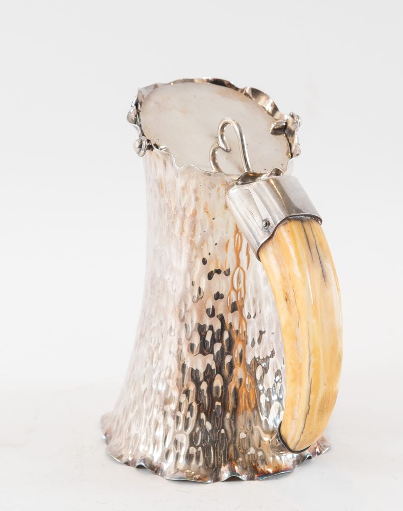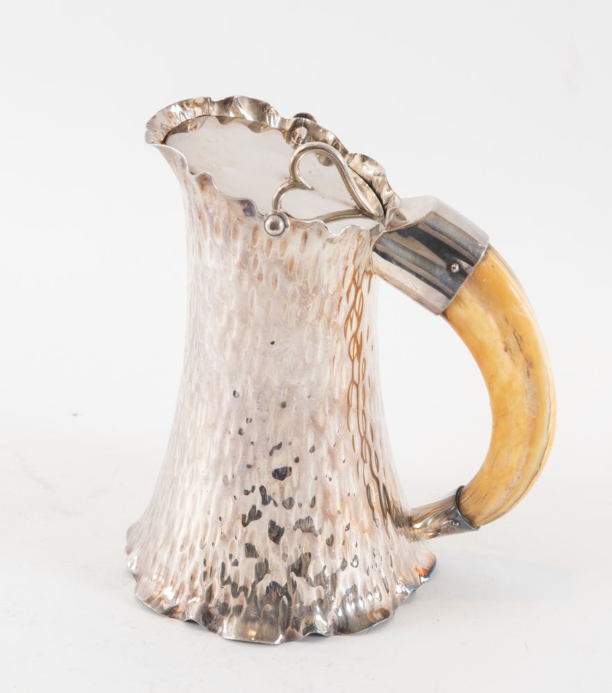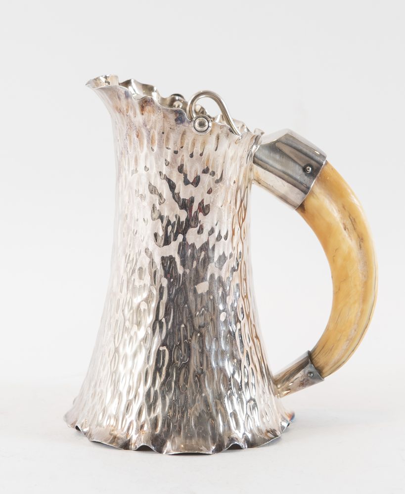 Brocca in metallo argentato. Sotto la base reca punzoni: 2, H&H, aquila, 135 72. Cm 19x16,4x17.