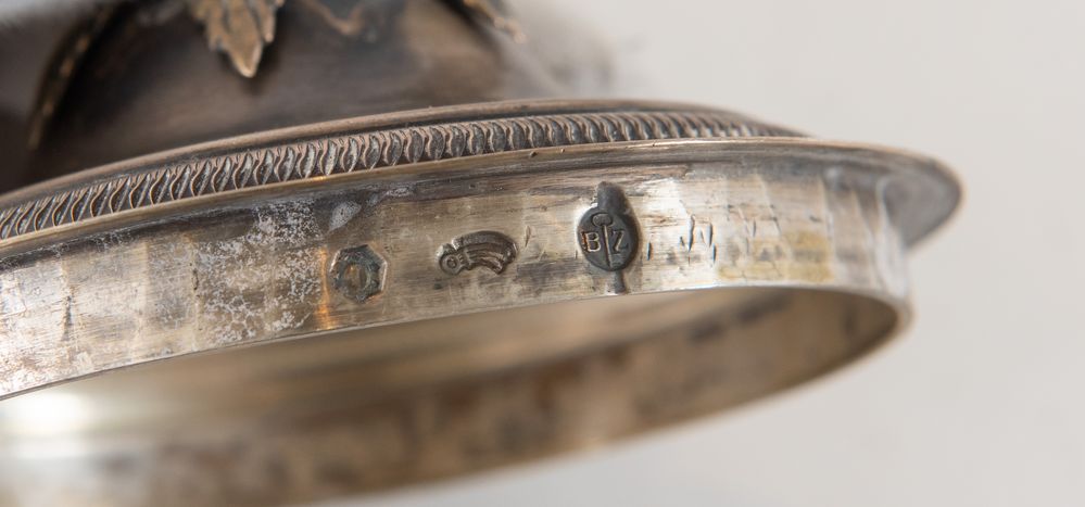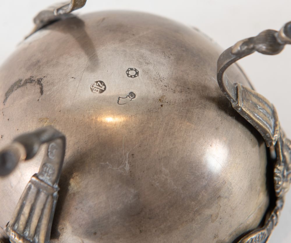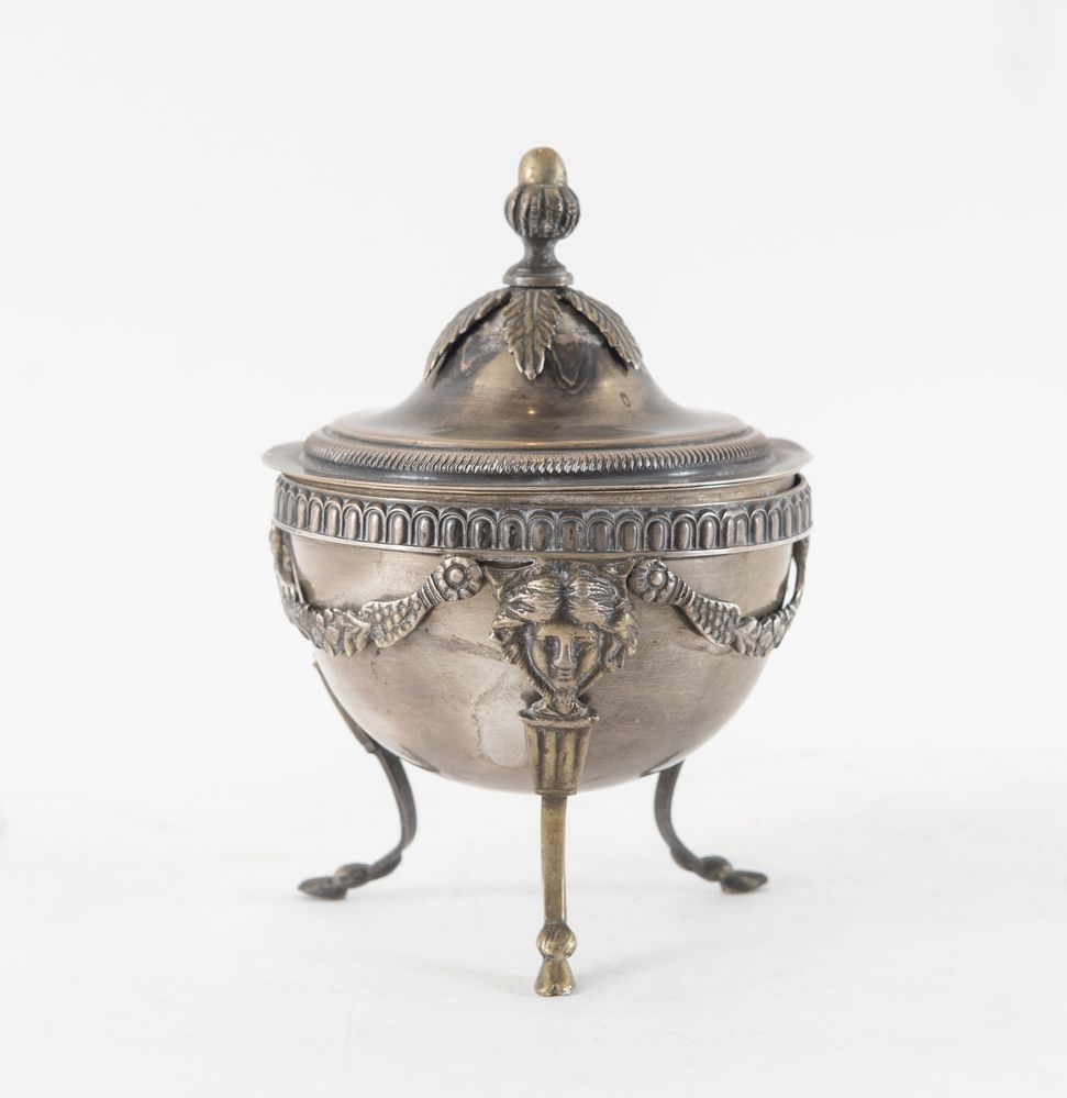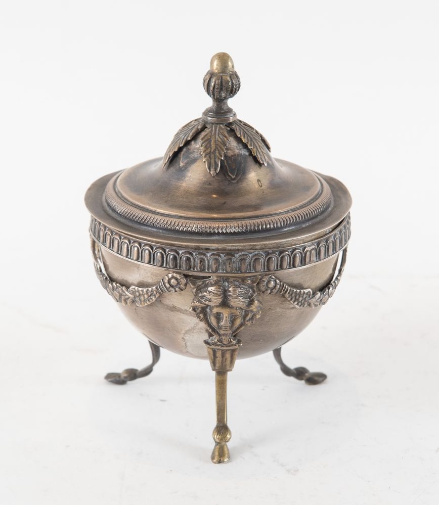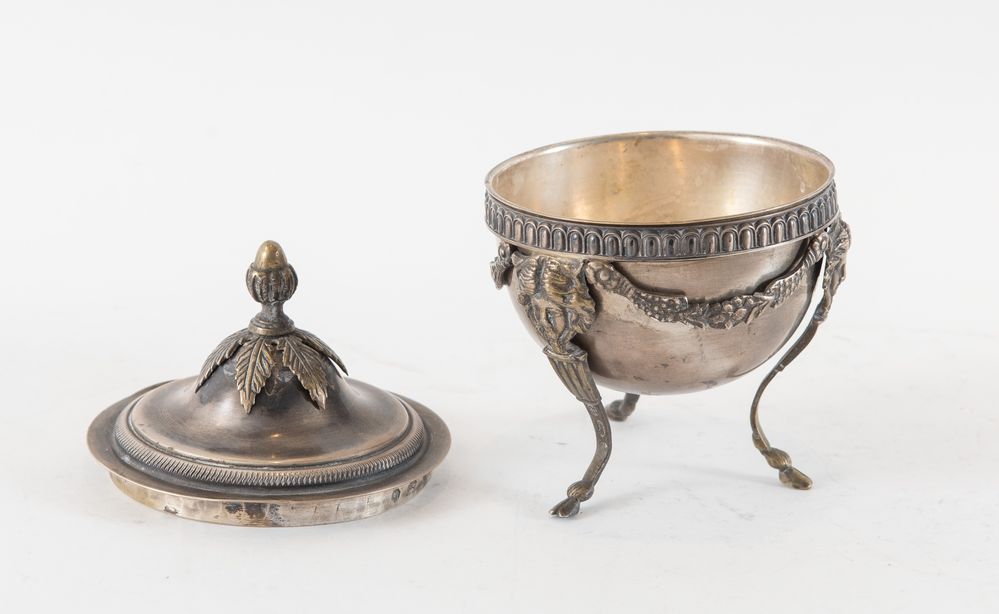 BRUNO ZARAMELLA, Padova, XX secolo. Zuccheriera con mascheroni in argento...