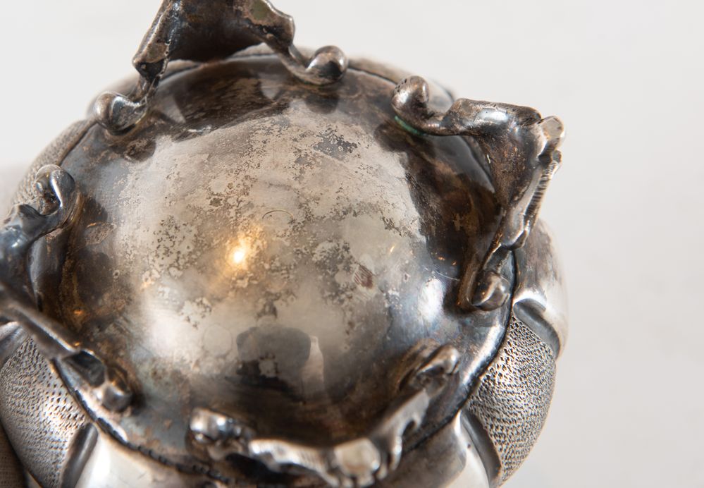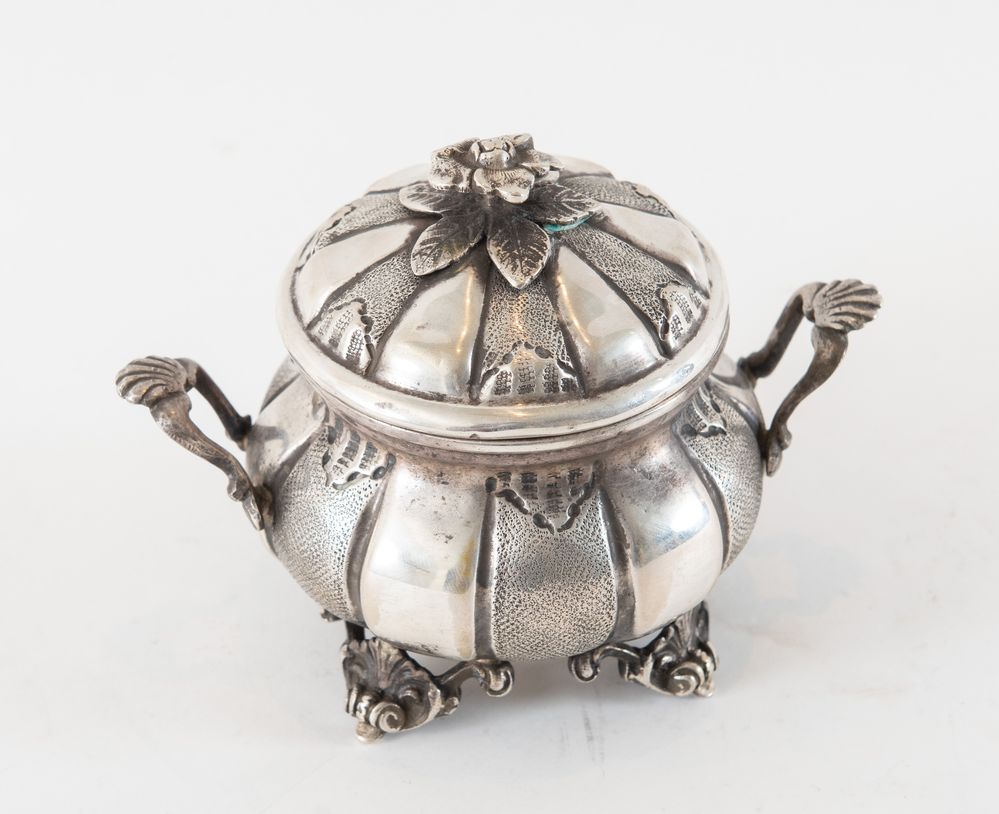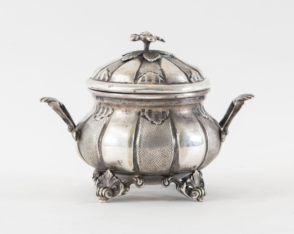 Zuccheriera in argento 800. Sotto la base reca punzone 800. Cm 10,5x13x9....