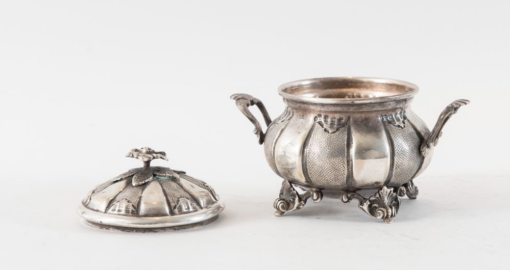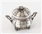 Zuccheriera in argento 800. Sotto la base reca punzone 800. Cm 10,5x13x9. Peso: 244 gr.