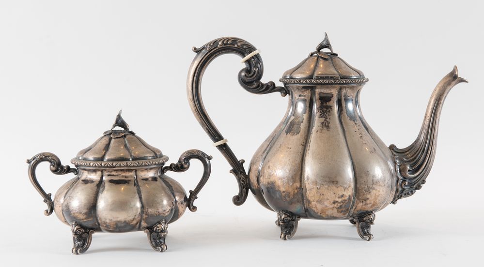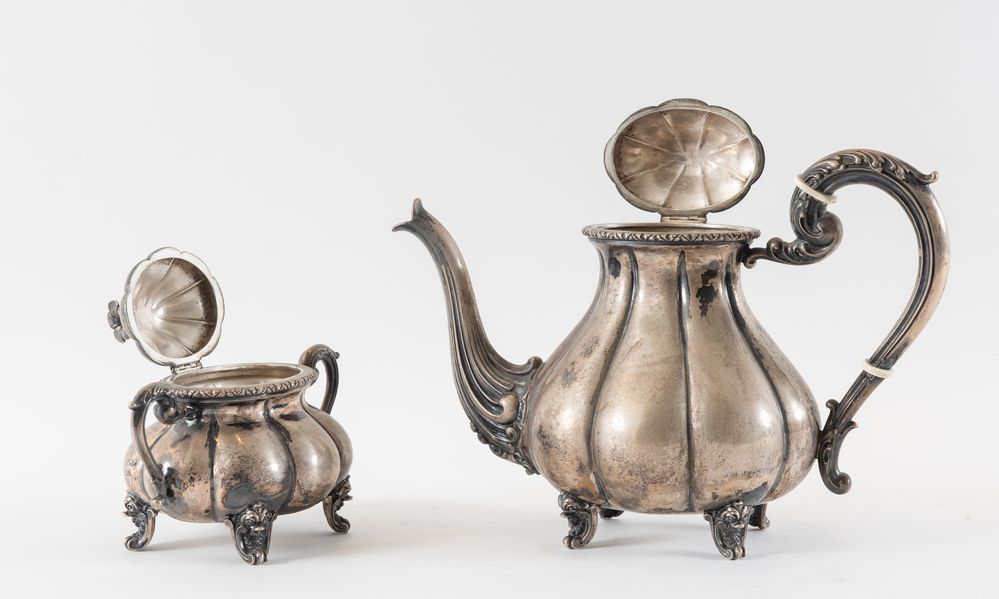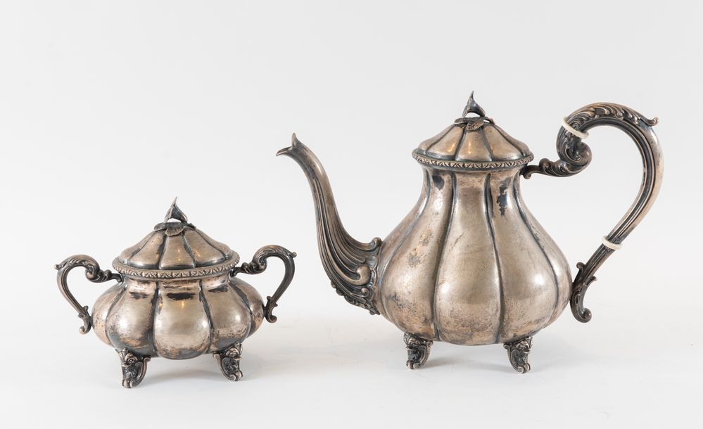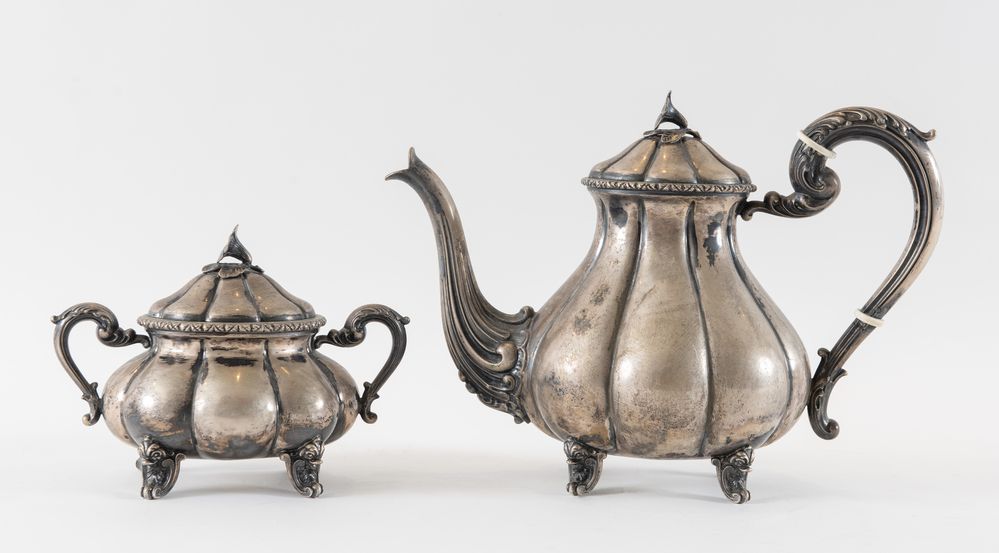 ITALIA, XX secolo. Set composto da teiera e zuccheriera. Sotto la base recano...