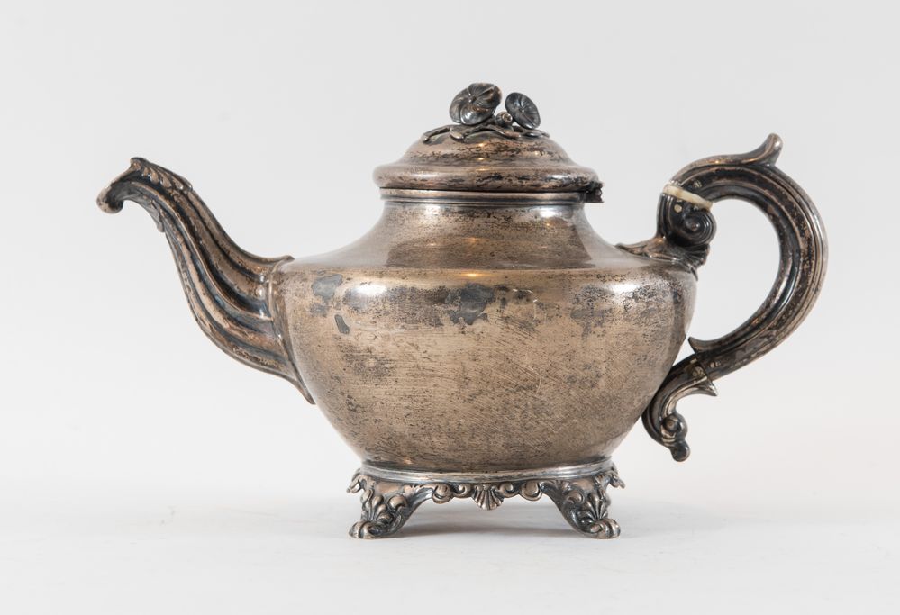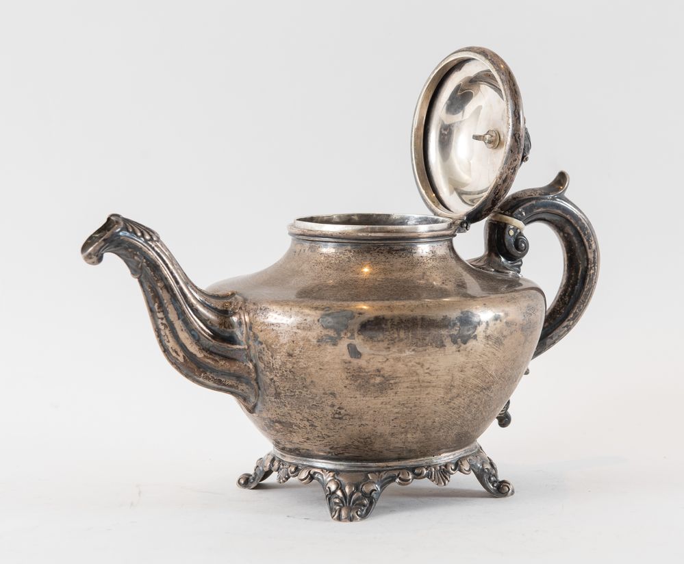 Hamilton & Co., Calcutta, metà del XIX secolo. Teiera in argento 925. Sotto...