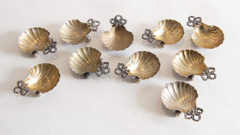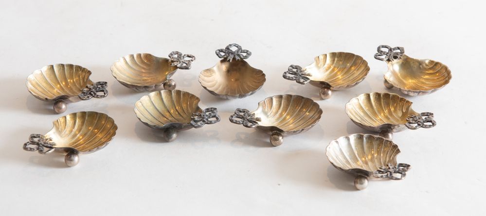 ITALIA, XX secolo. Lotto composto da dieci conchiglie in argento 800. Sotto...