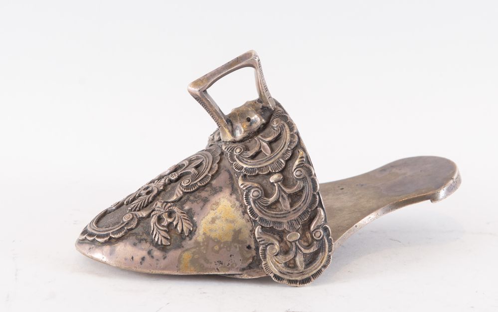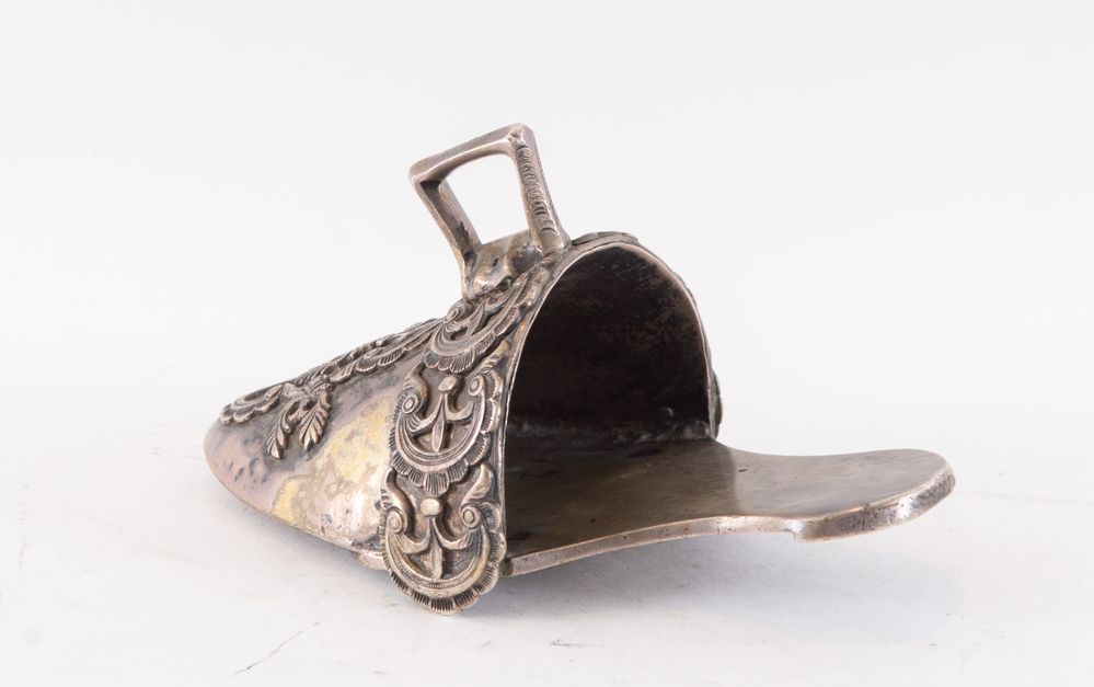 Fine del XVIII secolo. Staffa da amazzone in argento. Non reca punzoni...