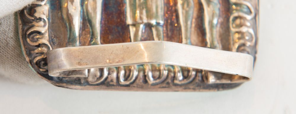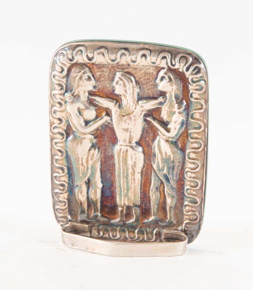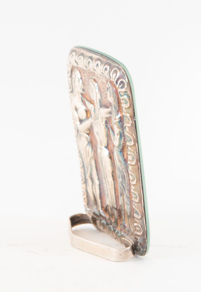 Argentiere CIGHETTI LUCIANO, Milano. Specchietto con cornice in argento 800. Al fondo recano punzoni: 800 e losanga locativa 537MI. Cm 9x7x2,5.