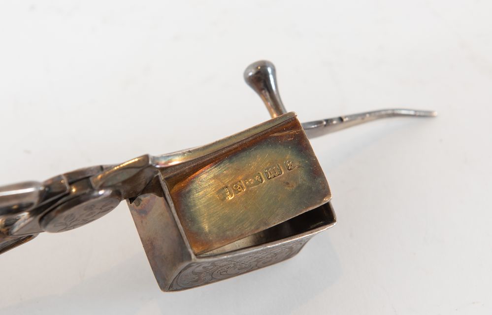 Trinciatabacco in argento. Reca punzoni non decifrati. Cm 2,9x17,5x6. Peso: 116 gr.
