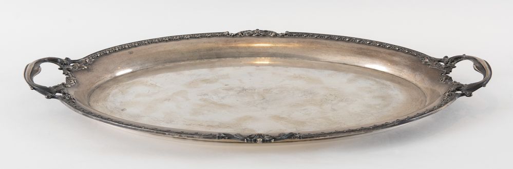 Italia, XX secolo. Vassoio in argento 800. Sotto la base reca punzoni: 800 e losanga locativa non identificata. Cm 63x42. Peso: 2416 gr.