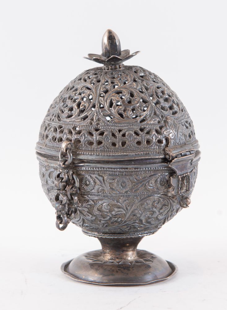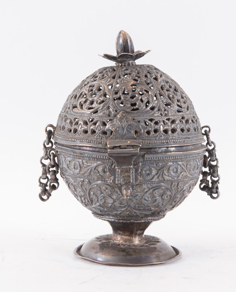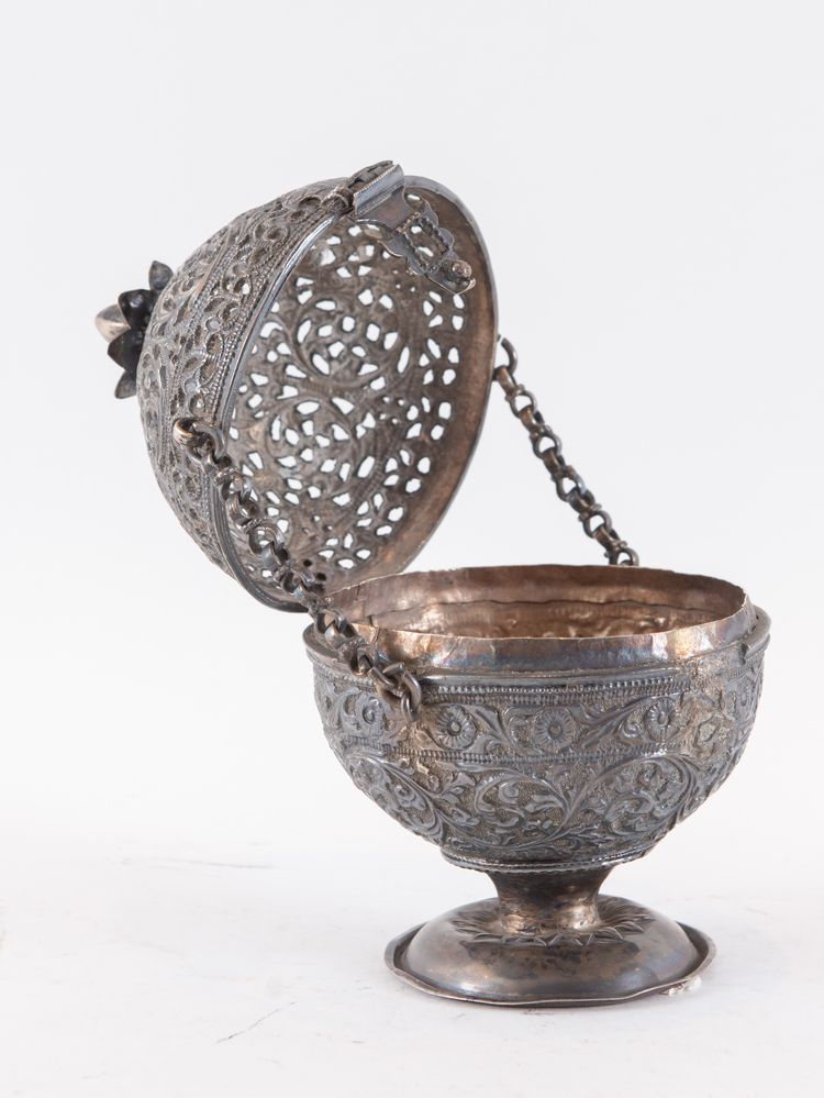Francia, fine XVII secolo - inizio XVIII secolo. Bruciaincenso in argento....