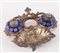 Calamaio in argento. Reca boccette in vetro colorato e tappi in argento. Sul...