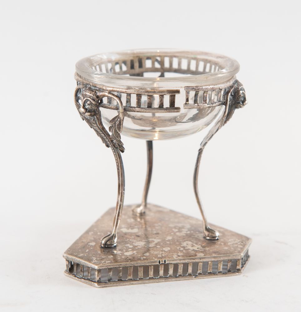 Milano, inizio XIX secolo. Coppia di saliere in argento. Recano ciotole in vetro. Non recano punzoni evidenti. Cadauna di cm 9x8x7. Peso complessivo dell'argento: 162 gr.