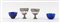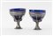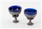 Coppia di saliere in argento. Recano lavorazione in filigrana e ciotole in vetro blu. Cadauna di cm 6,5xØ 5,5. Peso complessivo dell'argento: 75 gr.
