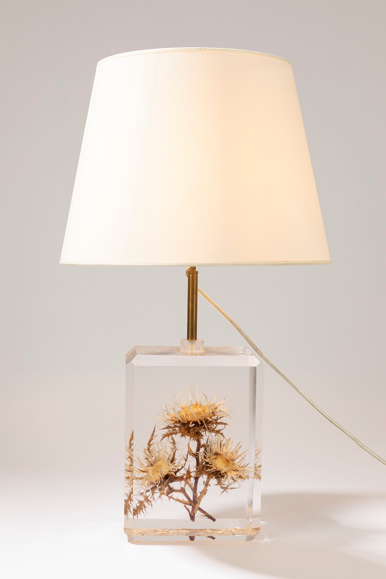 Manifattura Italiana - Lampada da tavolocm h 60 x dm 25 in metacrilato con inserito un fiore di cardo.