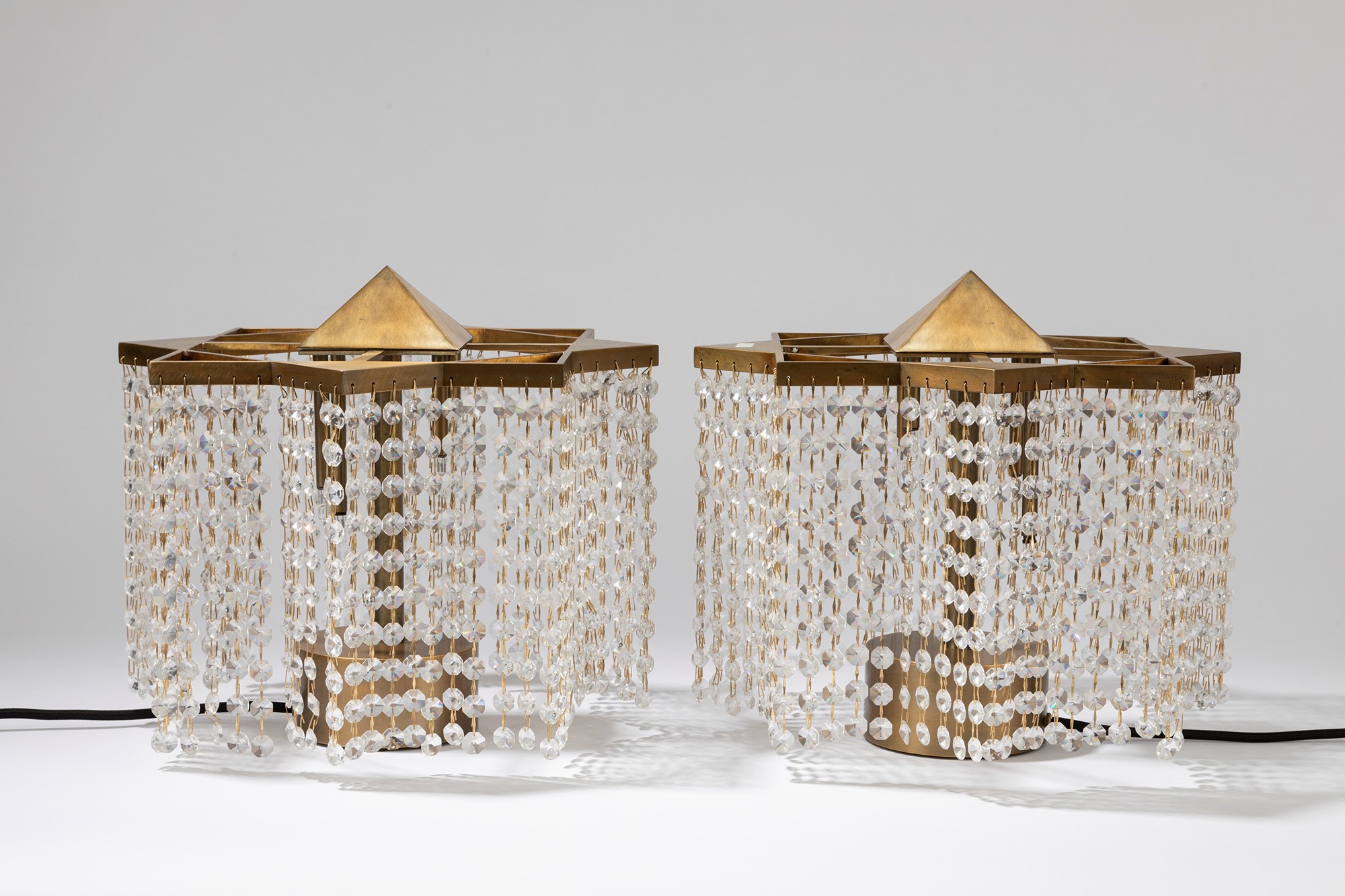 Manifattura Italiana - Coppia di lampade da tavolocm 30 x 35 in metallo dorato e sferette di vetro.