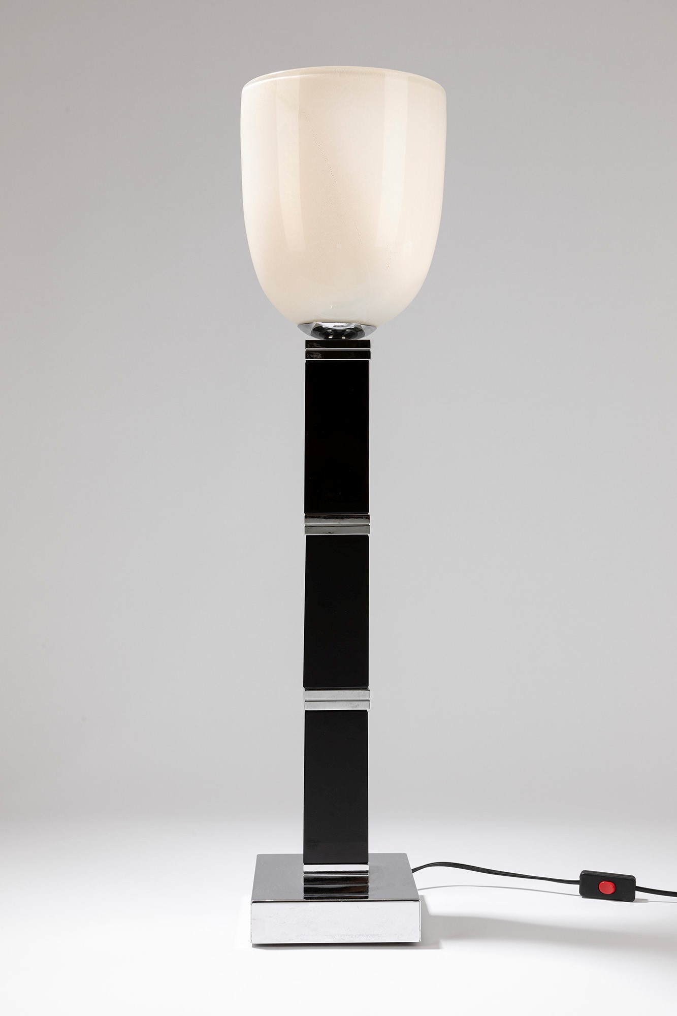 Manifattura Italiana - Lampada da tavolocm 83 x 16 x 16 con base in acciaio cromato e vetro opalino nero, coppa in vetro.