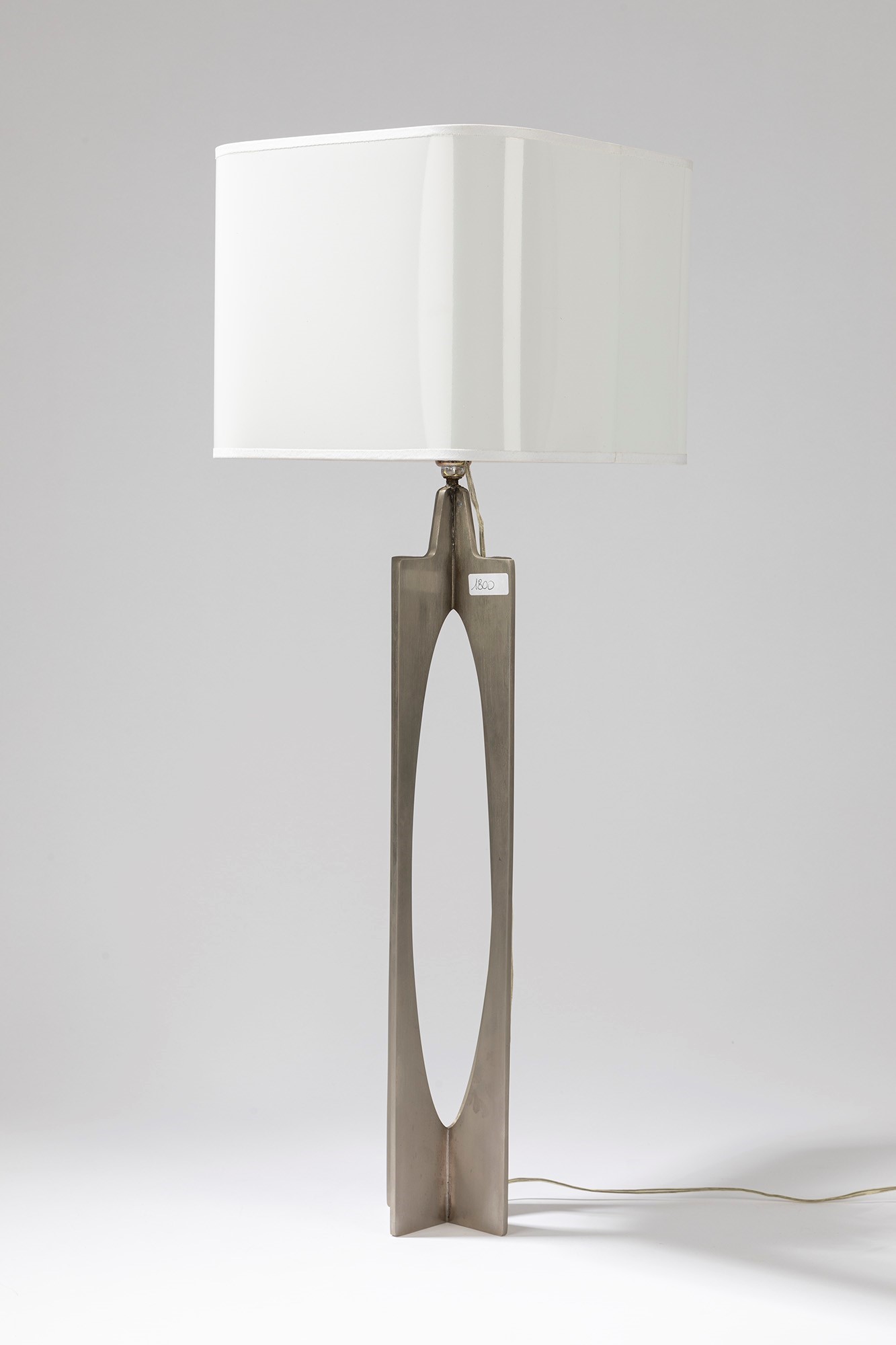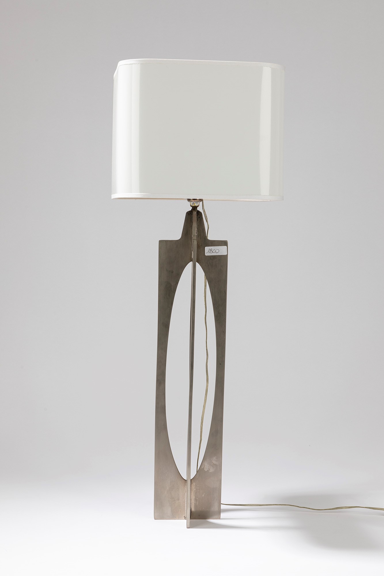 Manifattura francese - Lampada da tavolocm 25 x 25 x 63 H in alluminio con paralume in pvc bianco.