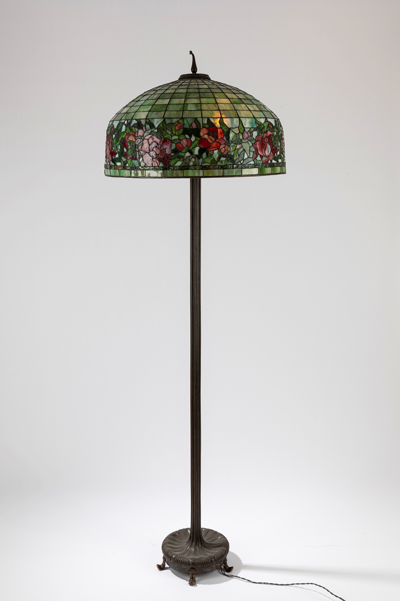 manifattura americana - Lampada da terradm max 59 cm, H 190 cm in stile Tiffany con struttura in ferro e cappello in vetro colorato.