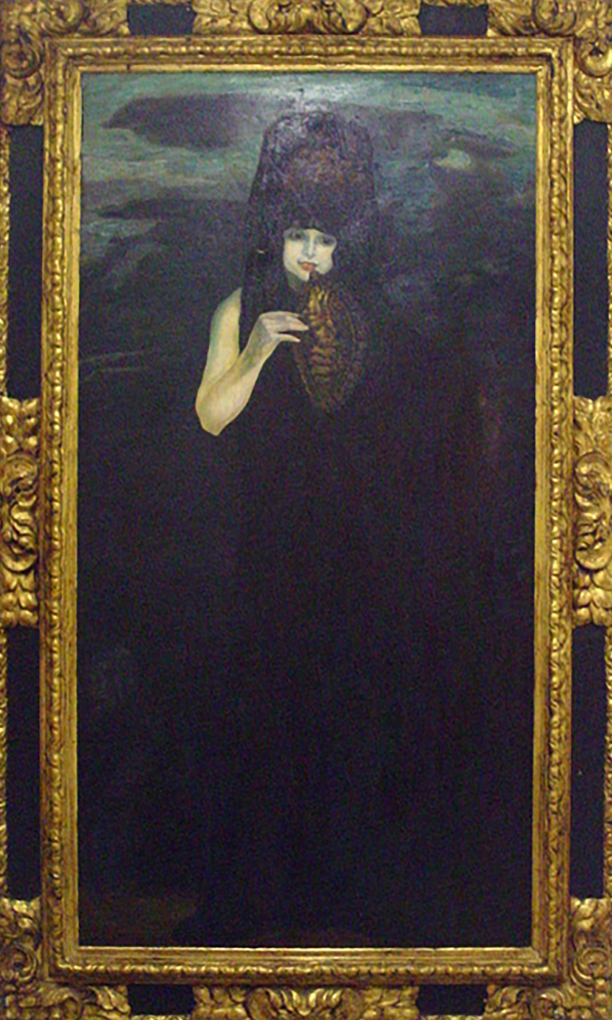 Spagna - Olio su telacm 121 x 195 raffugurante donna con ventaglio. Importante cornice dorata.
