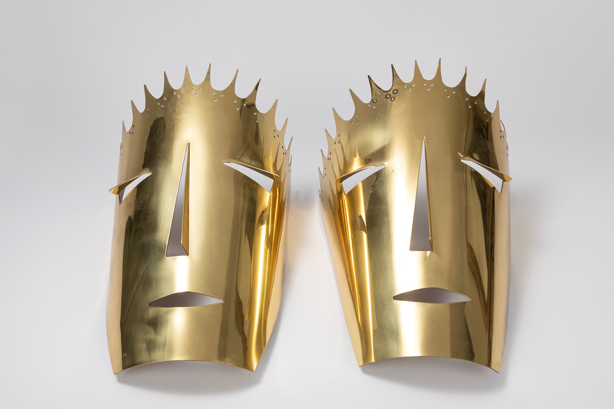 Manifattura Italiana - Sculturecm h 45 x 27 x 22 in ottone ispirate a maschera disegnata da Gio Ponti, utilizzabili come appliques.