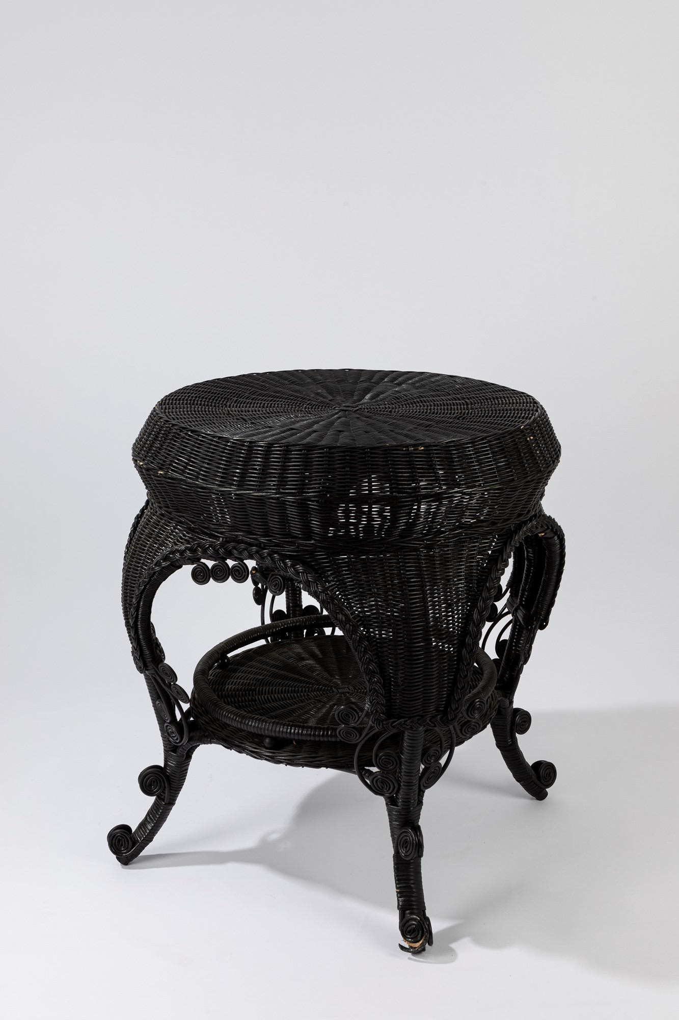 Manifattura Italiana - Tavolinocm 80 x 69 in vimini tinto grigio scuro.