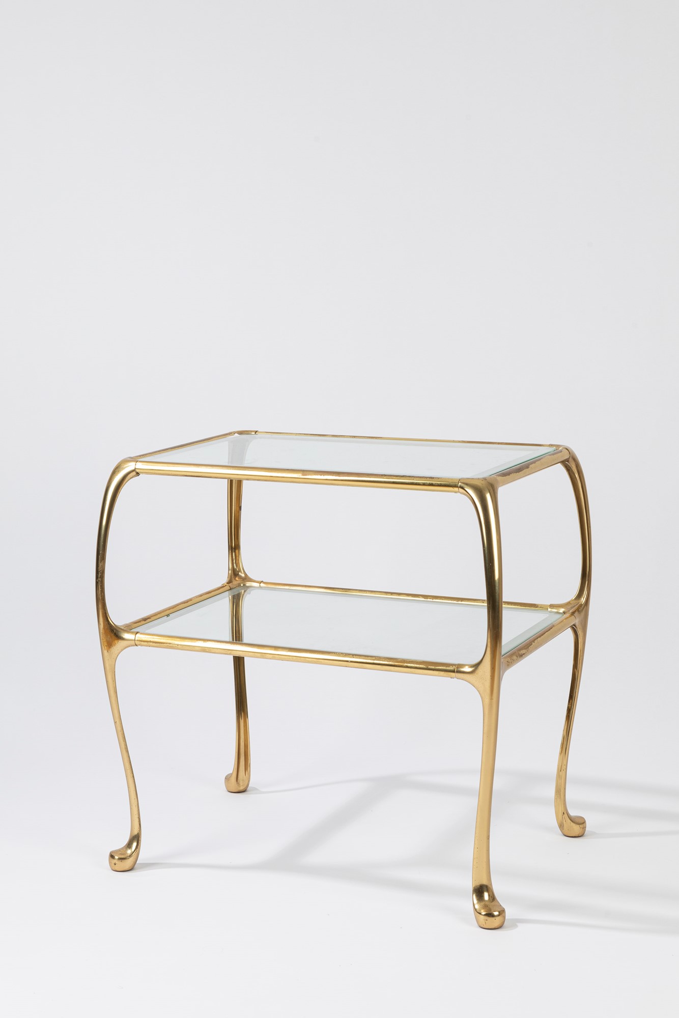 Manifattura Italiana - Tavolinocm 52 x 36 x 56 in ottone con due ripiani in vetro.